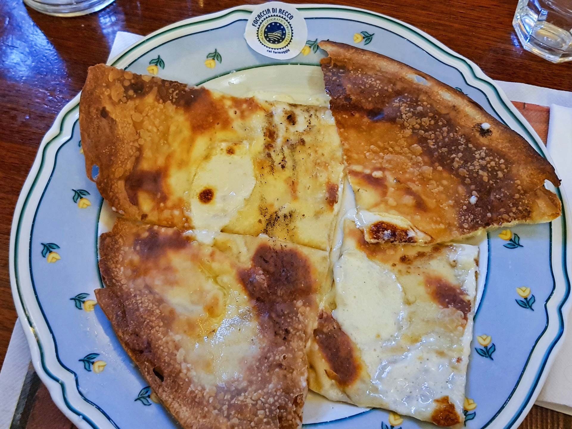 Natürlich gibt es Focaccia, sogenanntes „ligurisches Fladenbrot“, von der Regionshauptstadt Genua bis in jedes noch so winzige Dorf im Hinterland. Im regionalen Dialekt heißt es „Fügassa“, was „an der Feuerstelle gebacken“ bedeutet, und dient den Ligurern als Frühstück, Snack oder Beigabe zum abendlichen Aperitif. Aber findet man andernorts köstliche Focaccia semplice, sprich einfach, ohne Belag, Focaccia mit Tomaten, Zwiebeln, Oliven oder anderen Toppings, so rühmt sich Recco schon seit dem 15. Jahrhundert mit der Erfindung der speziellen Käse-Focaccia. Dies war zur Zeit der Sarazenen, eines Volksstammes aus dem Nordwesten der arabischen Halbinsel, der nicht nur Ligurien häufig überfiel. Recco war als Küstenstadt ein Lieblingsziel der Räuber, und die Bewohner retteten sich ins Hinterland, wo sie an Essbarem vor allem Korn zur Produktion von Mehl fanden – und Kühe, sodass es ihnen auch an Milch und Käse nicht fehlte. Da kamen sie irgendwann darauf, eine Käse-Focaccia aus diesen einfachen Zutaten zu backen. Es dauerte jedoch bis nach dem Zweiten Weltkrieg, als die Wirtschaft wuchs und Recco mit seinem starken Wasserball-Team von sich reden machte, dass sich das Städtchen zur gastronomischen Hauptstadt Liguriens mauserte – mit Käse-Focaccia ganz oben auf den Speisekarten!